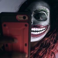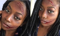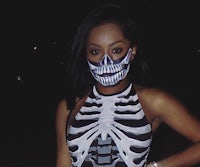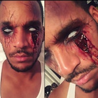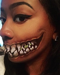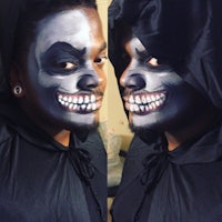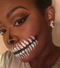 You can still get a dramatic look with a half of Halloween face paint. You can get it horizontally or vertically.